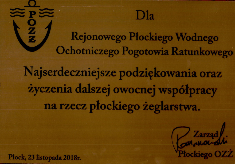 Z naszej strony chcielibyśmy podziękować wszystkim klubom żeglarskim z płockiego okręgu za owocną współpracę. Jednocześnie deklarujemy naszym kolegom żeglarzom, że jesteśmy do Waszej dyspozycji.