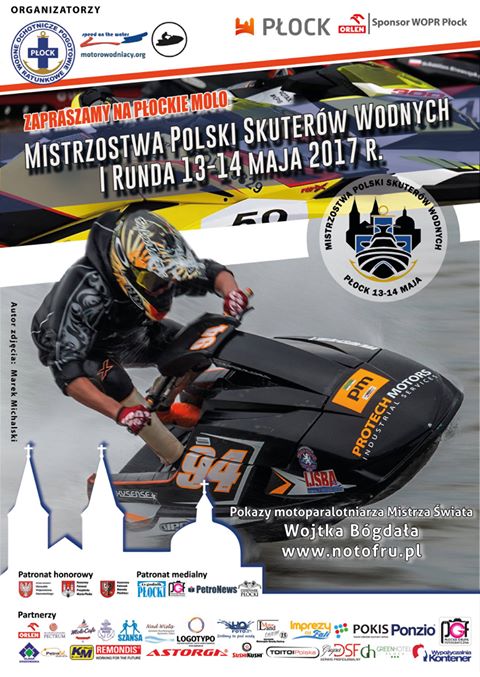 18238041_1192234487548495_2238101736203036120_o new W dniach 13-14 maja 2017 r. Rejonowe Płockie WOPR organizuje Mistrzostwa Polski Skuterów Wodnych. Będzie to Święto wodnych sportów motorowodnych, które odbędzie się pod patronatem Prezydenta Miasta Płocka Pana Andrzeja Nowakowskiego, Marszałka Województwa  Mazowieckiego Adama Struzika oraz Starostę Płockiego Mariusza Bieńka .
