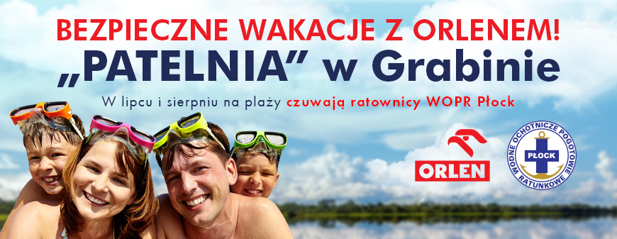WOPR oraz ORLEN zapraszają na wakacyjny wypoczynek na plaży popularnie nazywanej „Patelnią” w Grabnie. Dzięki finansowemu zaangażowaniu PKN ORLEN miejsce do wodnej rekreacji zostało już oczyszczone, woda przebadana, a ratownicy wyposażeni w profesjonalny sprzęt. Nad bezpieczeństwem plażowiczów po raz pierwszy od ponad dekady czuwać będą ratownicy Wodnego Ochotniczego Pogotowia Ratunkowego z Płocka.